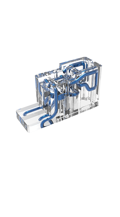 運用3D打印技術(shù)實現(xiàn)復(fù)雜產(chǎn)品結(jié)構(gòu)的模具水路冷卻系統(tǒng)。益處:型腔溫度均衡,產(chǎn)品良率上升冷卻效率提升,成型周期縮短,生產(chǎn)效率提高。
